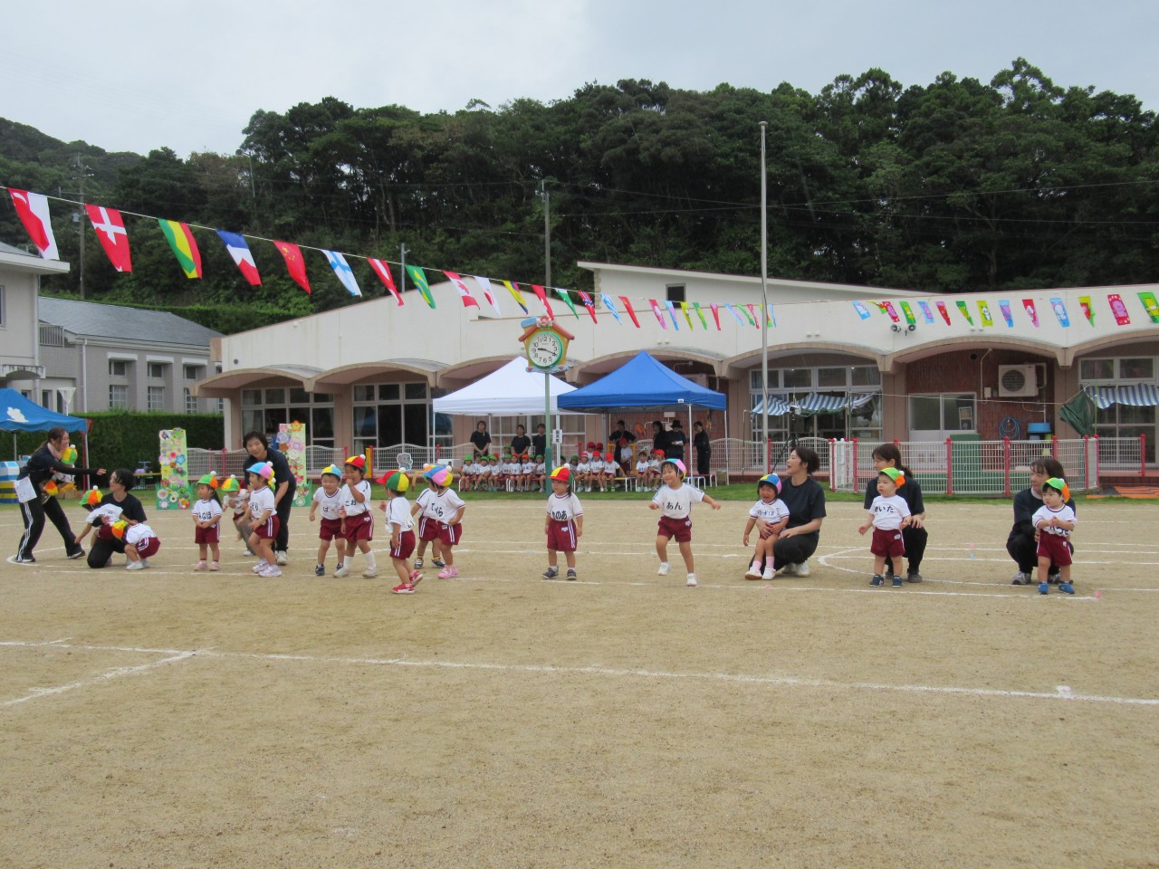 徐々に雨が降り始め、雨の中の運動会となってしまいましたが、子ども達は、「楽しかった~」と満足していました。